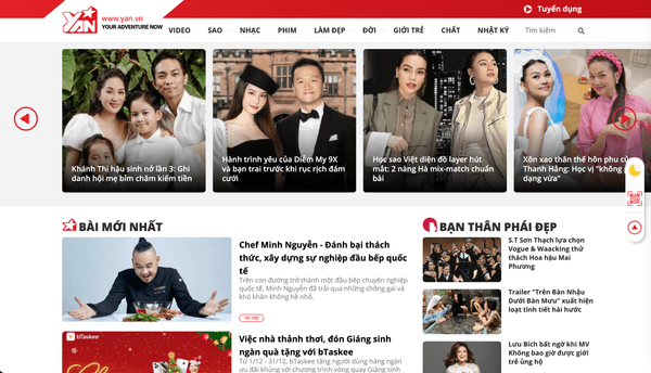 Cùng với các trang báo điện tử khác, Yan.vn hiện là nơi cập nhật nhiều tin tức bổ ích dành cho giới trẻ. Yan còn cập nhật những thông tin nóng hổi về các ngôi sao trong nước và thế giới. Với nhiều chuyên mục hấp dẫn như: đời sống, ngôi sao, giới trẻ, sức khỏe, làm đẹp, tin hot…